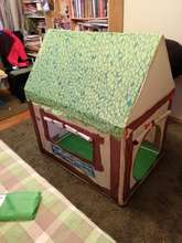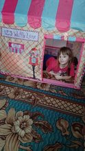 Yaroslavl reached in a week, brought the courier. I did not like that the material is not fabric as described, but the oilcloth as if from an umbrella. Otherwise everything is fine. The child is true while 1,4 so he played only once and did not come in (( The house is assembled easily, because all the details are already fastened together)) The store by the way does not answer my question.