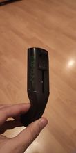 - Pull down the front spring, the cap into the hole on the back, and then press the switch you can open the bottle.