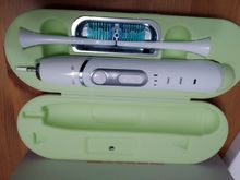 Good brush at a good price. Two modes and three speeds. Two nozzles in the kit and 3 more as a gift (different, but specifically for what is not written anywhere) and perhaps important-ufsterilizer, how effective I do not know, but Blue shines. Came almost discharged. Charged in the case without wired charging. Nozzles sit well, but tugovato. It's hard to get out. Packed well, box in film, puffy bag and ordinary bag on top. Delivered Courier sdek