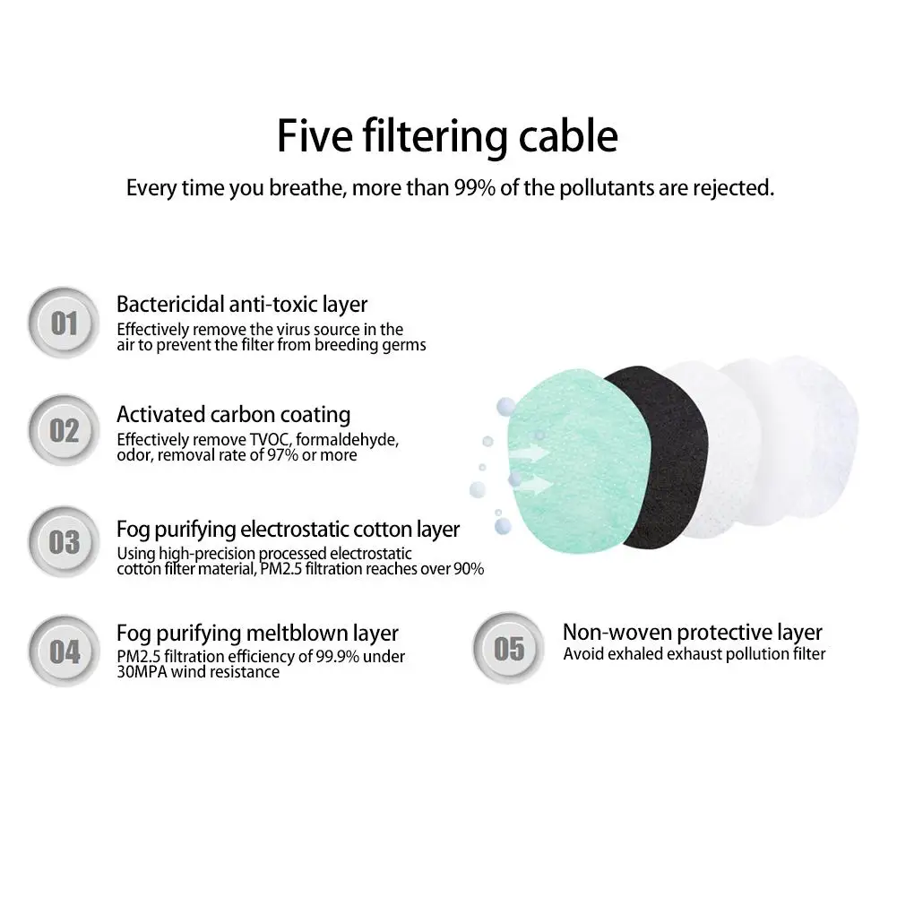 – Can filter out dust, cut off 98% of most particles, adsorb harmful odors when you move in a new residence, prevent vehicle exhaust gas, avoid pollen allergy, anti PM 2.5. Electric mask respirator built with internal turbofan, the 3-speed mode can be adjusted, offer full fresh.