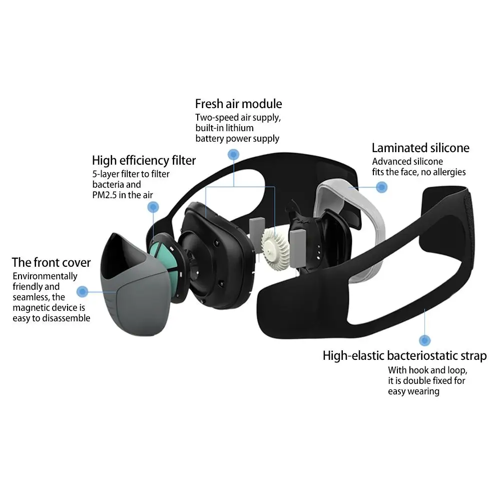 Reusable Outdoor Unisex Respirator Anti Flu Anti Dust Fresh Air Supply Smart Electric Face Mask