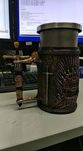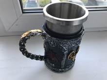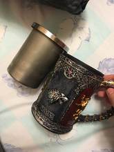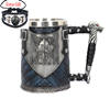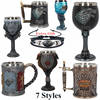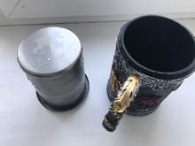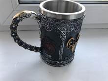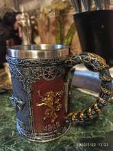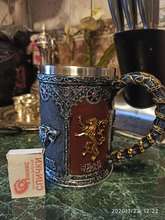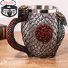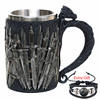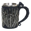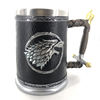 The Game of Thrones tankards have handles that are decorated with a gold chain, and the tankard is made of synthetic resin which is then painted by hand. The stainless steel inner cup is removable and can be washed in the dishwasher – he who has power over the iron throne can hardly be expected to wash his tableware by hand!