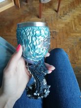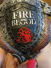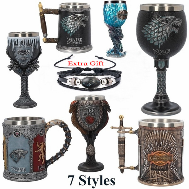 The tankard is decorated with signets and mottoes of the five noble houses. Therefore, you will find the Stark’s wolf emblem combined with Targaryen’s powerful dragon and Lannister’s rising lion.