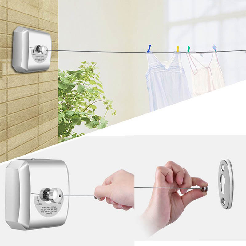 1.Retractable: Adjustable Stainless Steel line with Polished Chrome Finish extends up to 9.2 Feets. Any length under 9.2 feet is available with Lock Button. Easy to use