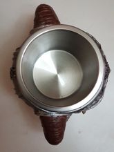 [COOL DESIGN] – This cool skeleton design drinking kettle has a skeleton of repeated relief images around the cup, a row of skulls at the bottom, and a clevis on each side of the cup
